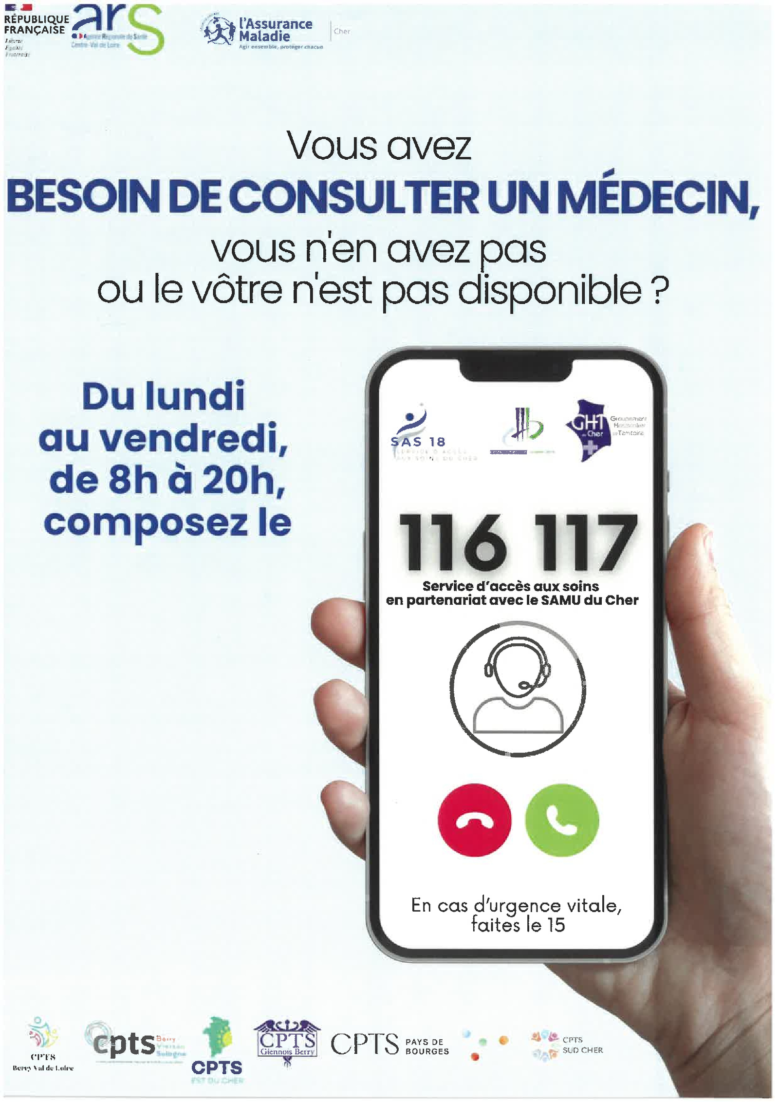 Besoin d'un médecin ? faites le 116 117
