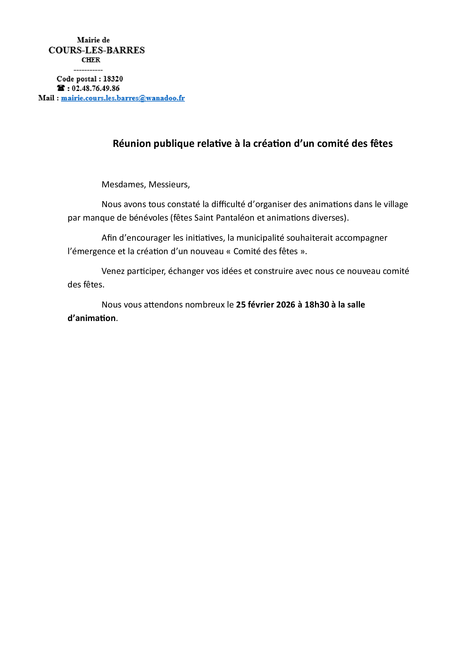 Réunion publique Comité des Fêtes