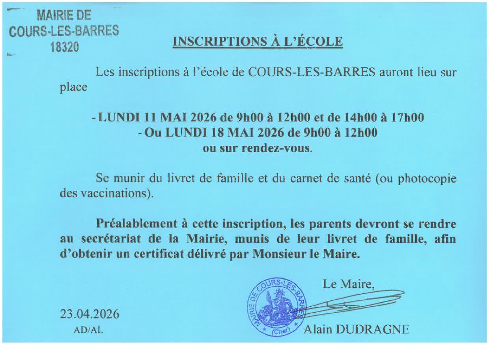Inscription école