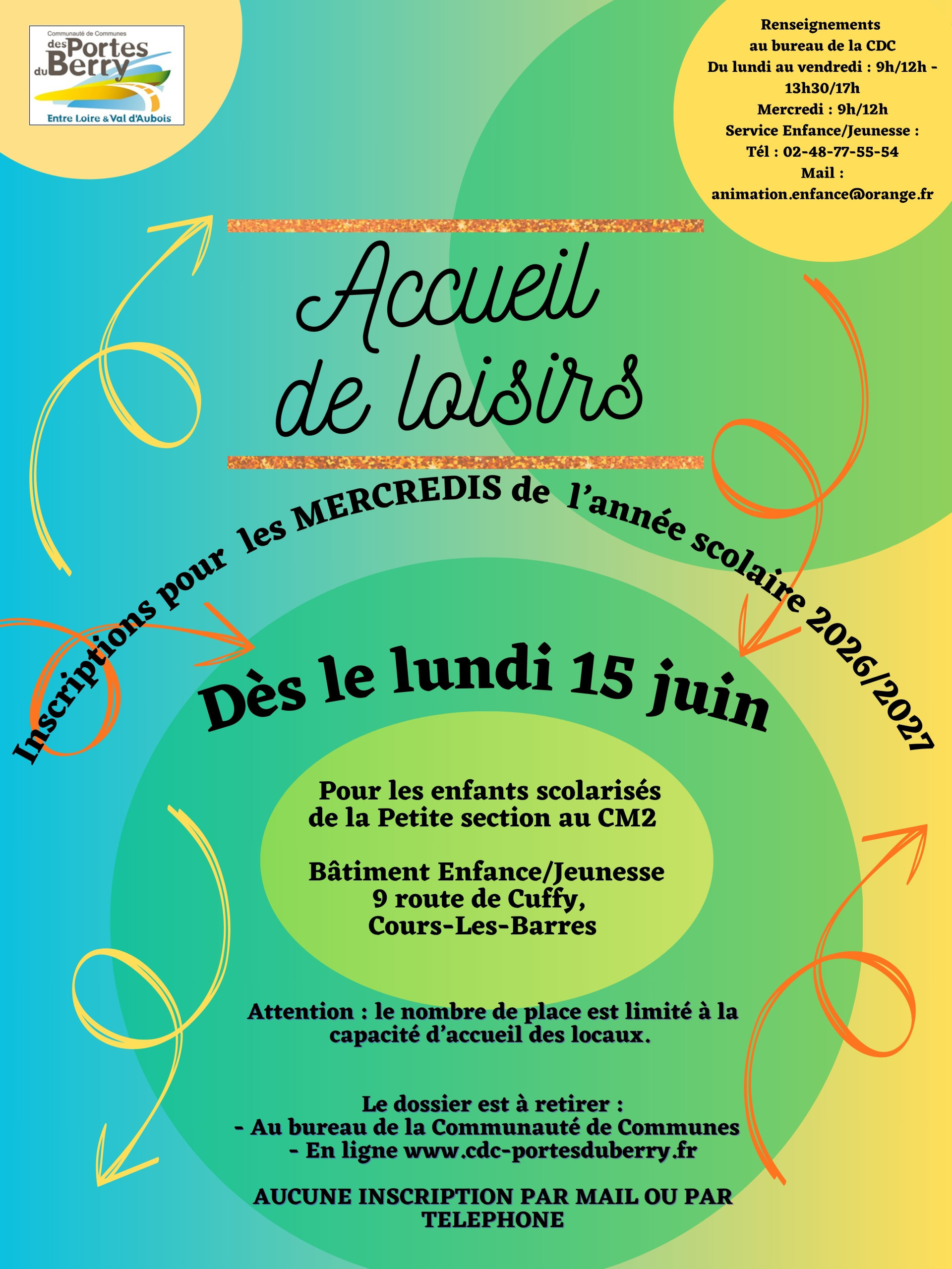 Inscription pour les mercredis accueil de loisirs 2026-2027